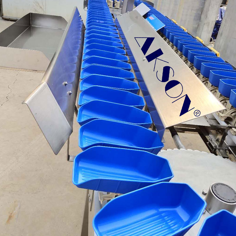 La selezionatrice per peso di ali di pollo e zampe di pollo è una macchina automatica per la selezione del peso in catena di montaggio. Il selezionatore di pesatura automatico con macchina di alimentazione può completare il lavoro di produzione ad alta efficienza. La velocità può raggiungere 300 al minuto, eliminare 10% velocità del disco vuoto, anche la velocità di marcia effettiva lo è 270 al minuto.L'accuratezza della classificazione effettiva è 97%-99% efficiente.